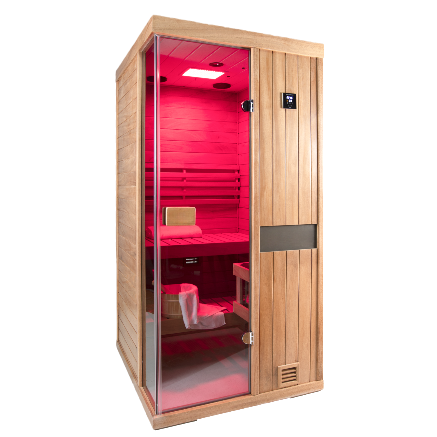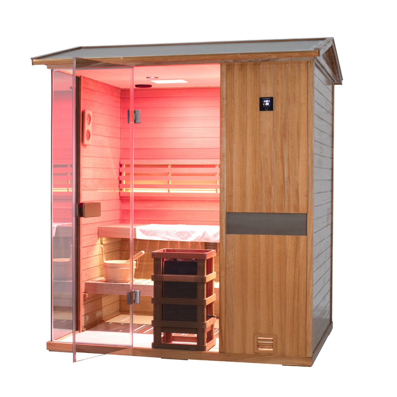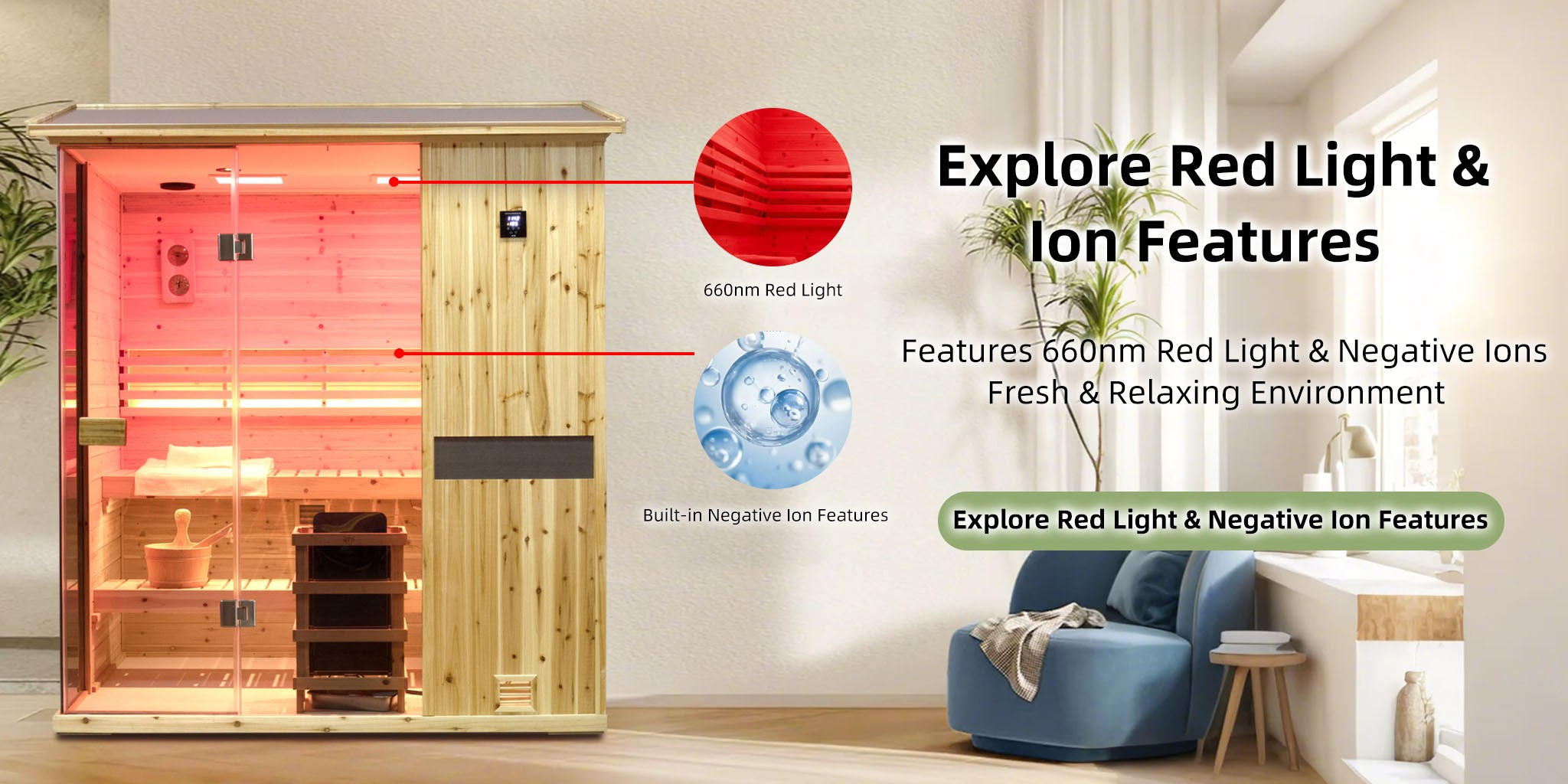 With its beautiful design and functional features,boasts a sleek V-Roof and premium wood. Featuring advanced negative ion technology and 660nm red light therapy,offers you an unparalleled sauna experience.