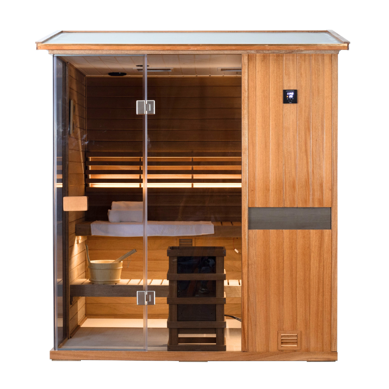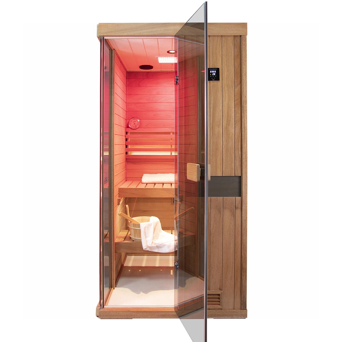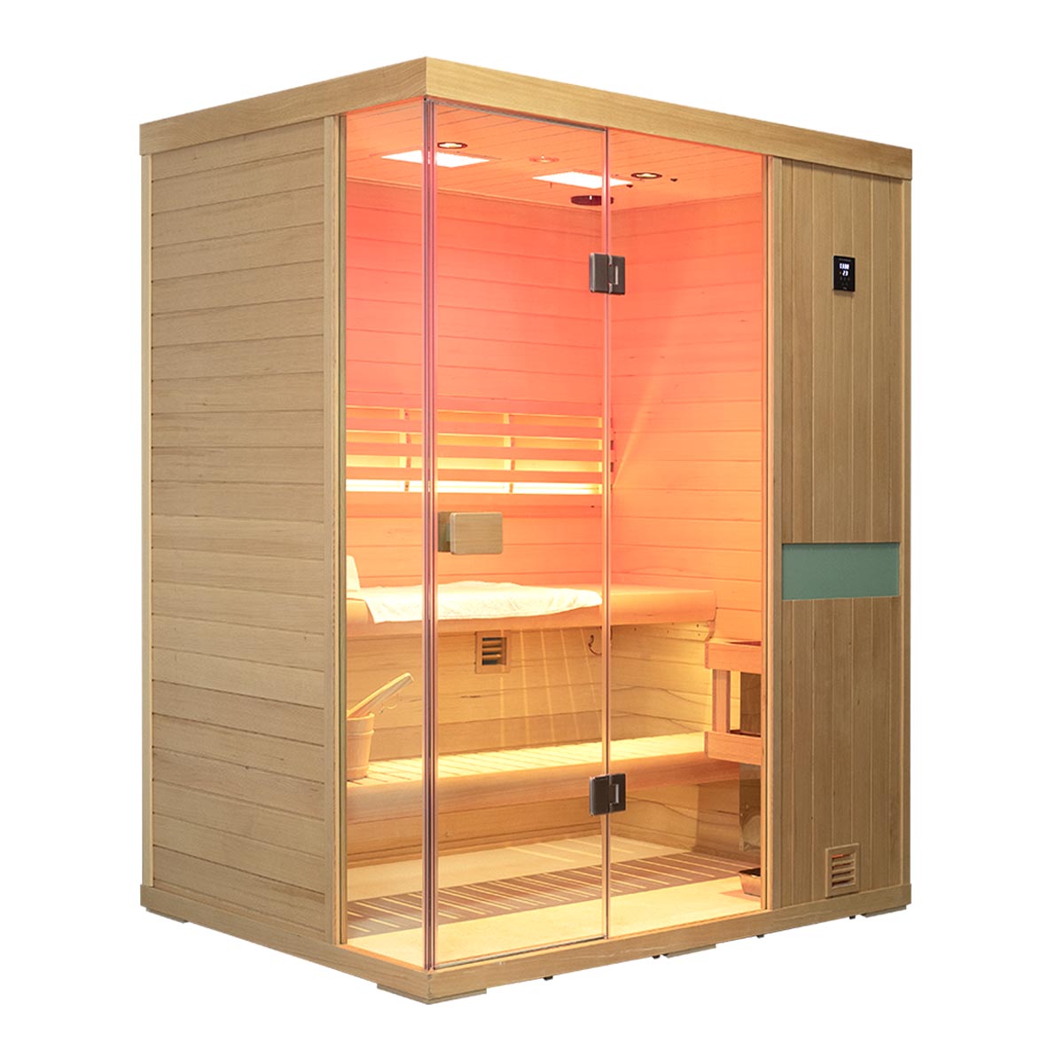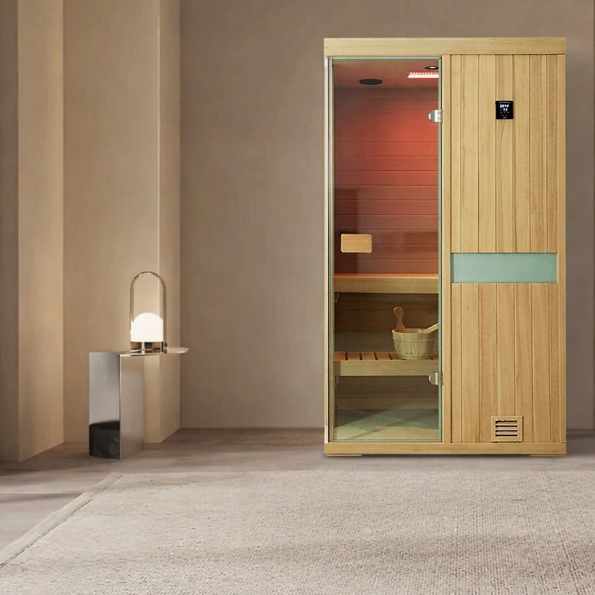 With its beautiful design and functional features,boasts a sleek V-Roof and premium wood. Featuring advanced negative ion technology and 660nm red light therapy,offers you an unparalleled sauna experience.