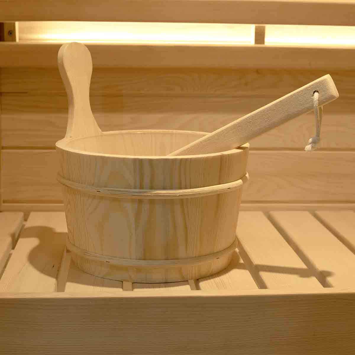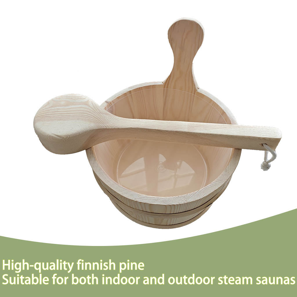 Handcrafted from authentic Finnish white pine, this traditional sauna bucket and ladle set brings spa-quality elegance to your home sauna experience.