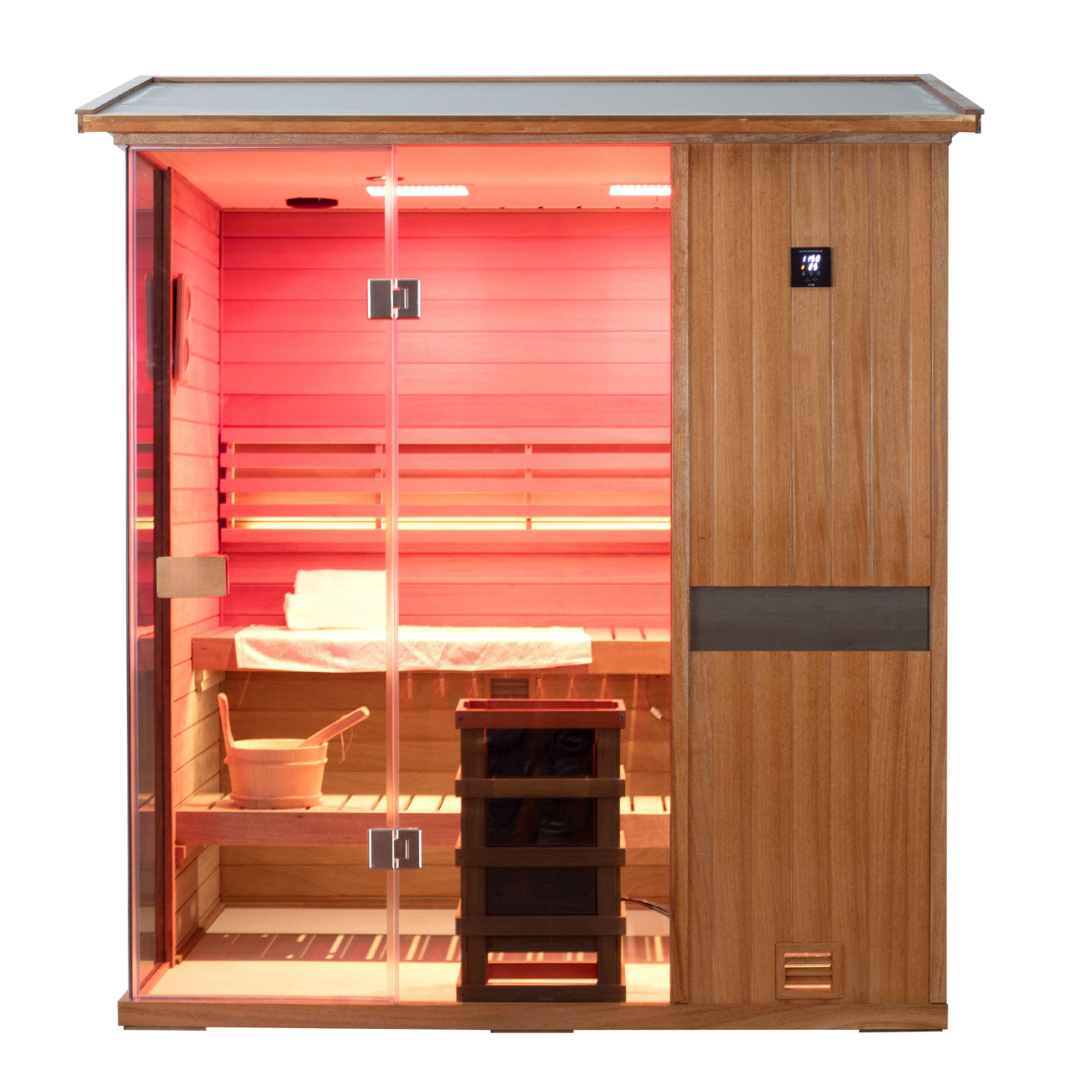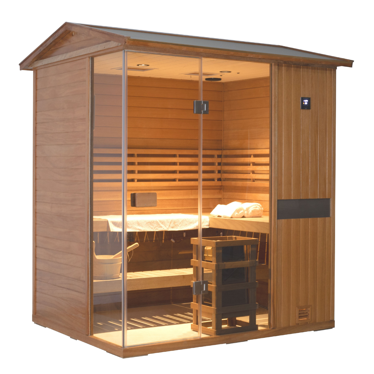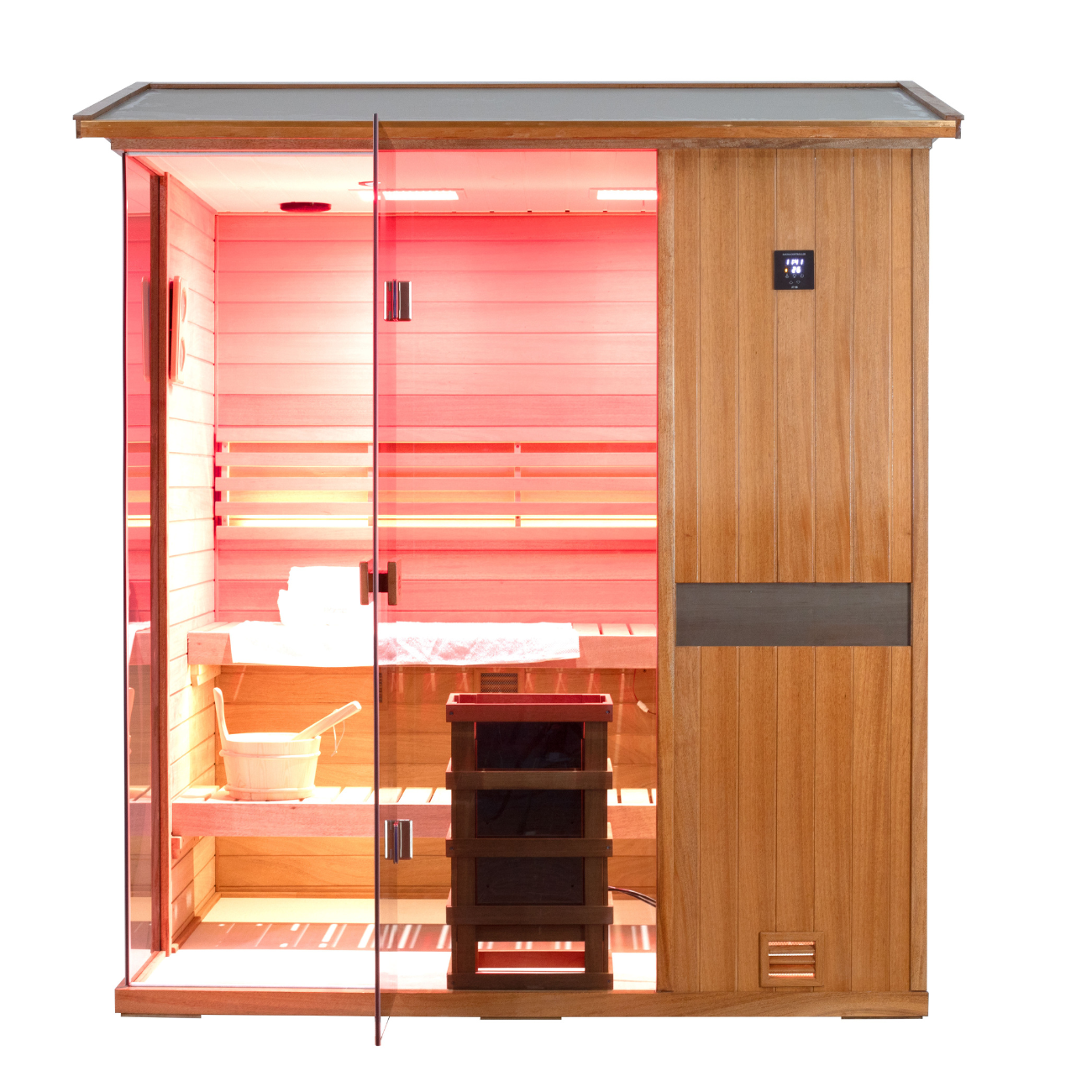 With its beautiful design and functional features,boasts a sleek V-Roof and premium wood. Featuring advanced negative ion technology and 660nm red light therapy,offers you an unparalleled sauna experience.