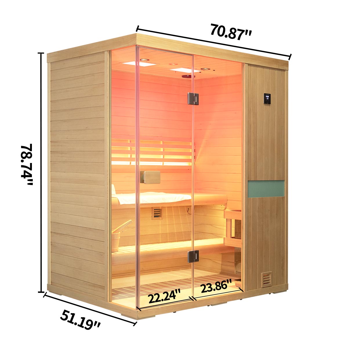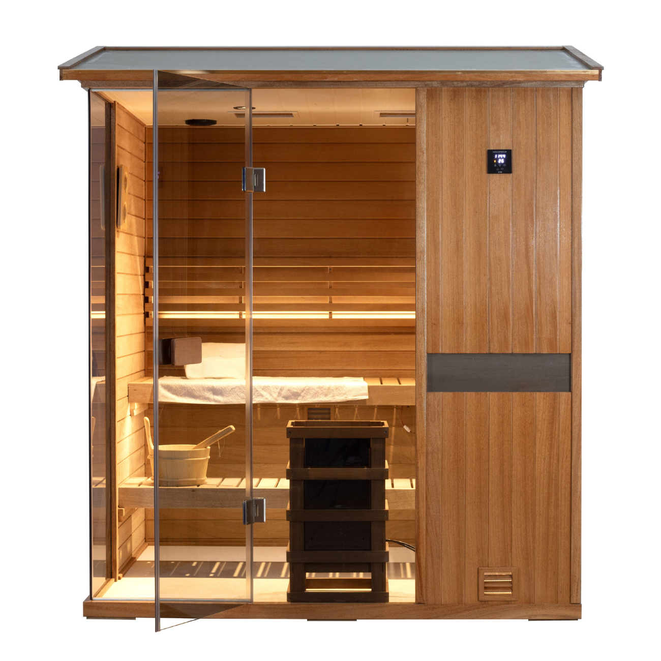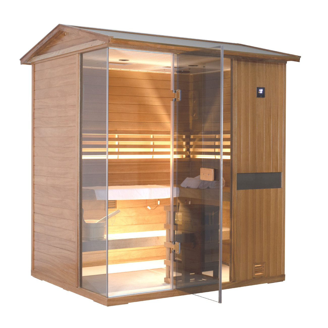 With its beautiful design and functional features,boasts a sleek V-Roof and premium wood. Featuring advanced negative ion technology and 660nm red light therapy,offers you an unparalleled sauna experience.